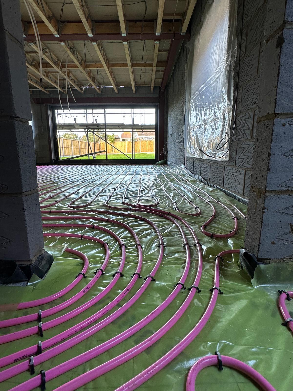 Once the pipework was installed and securely fixed, we conducted thorough pressure tests to ensure there were no leaks or issues. After testing, the flooring was laid over the heating system, creating a seamless finish. The entire underfloor heating process was completed with a focus on ensuring even heat distribution and energy efficiency. And we did this for each of the four new builds in the street.